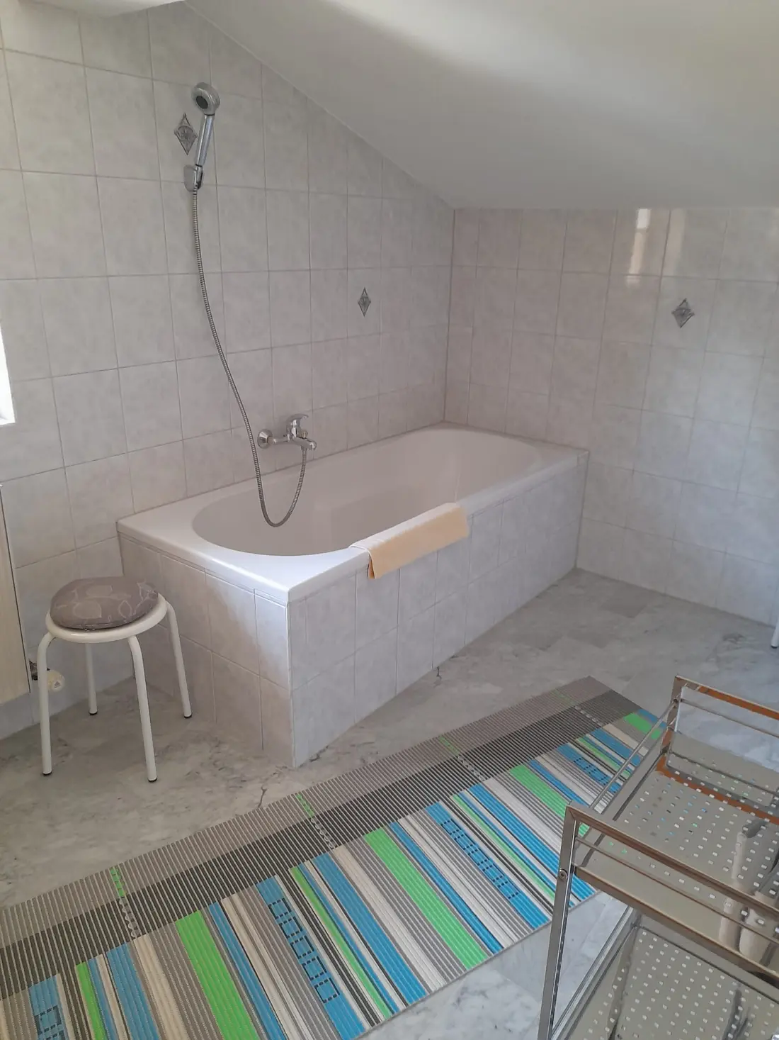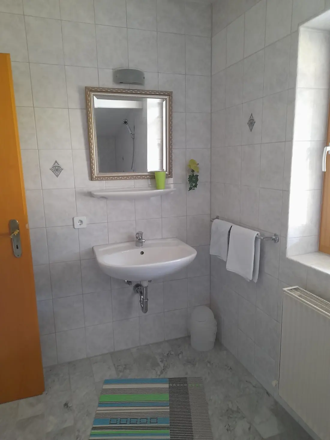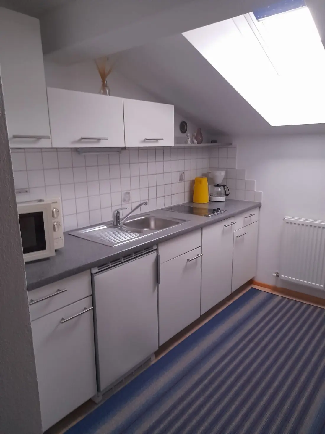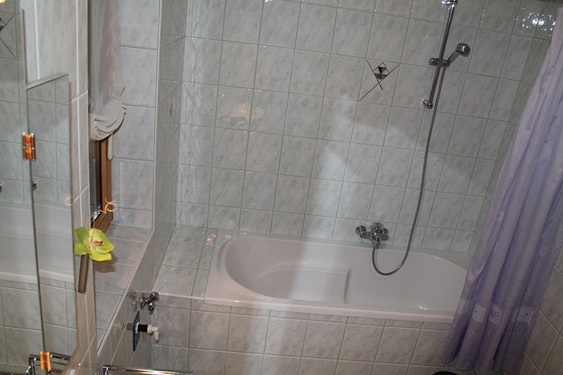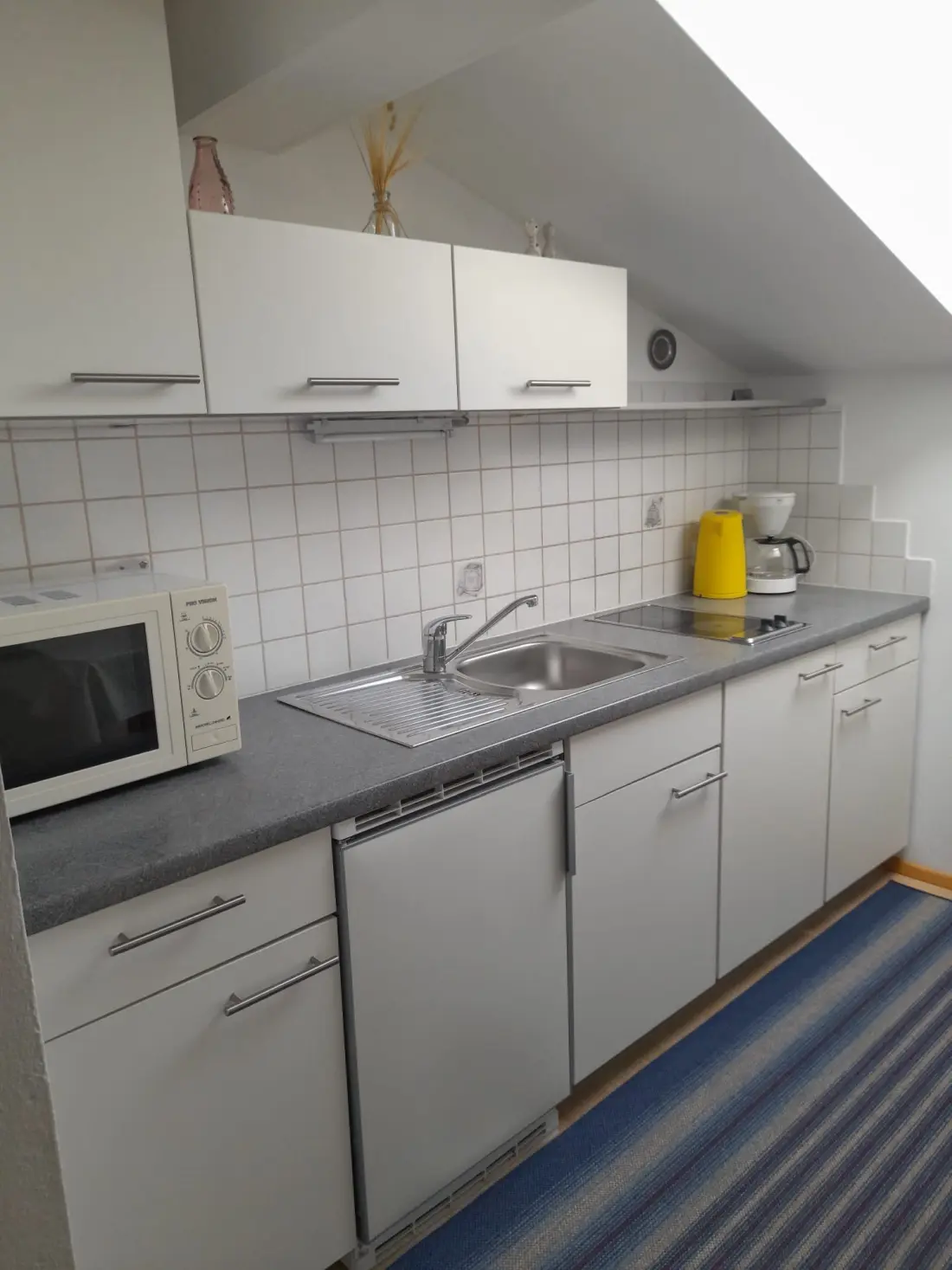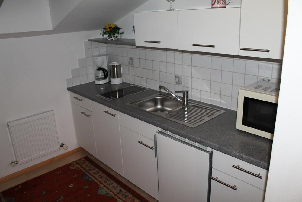 Mit eigener Dusche und WC erwartet Sie in der Ferienwohnung „Sissi“ eine komplett ausgestattete Küche für Selbstversorger. Geschirr und Geräte wie ein Herd, eine Kaffee-Maschine, Kühlschrank und Mikrowelle stehen bereit, im Bad finden Sie Handtücher. Ein Satellitenfernseher steht Ihnen für gemütliche Abende zur Verfügung.